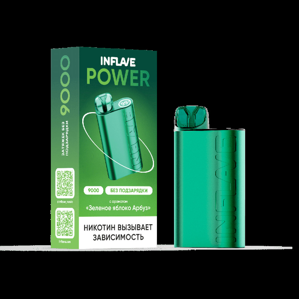 Электронная сигарета INFLAVE POWER 9000 затяжек Зеленое Яблоко Арбуз - купить в Ржеве