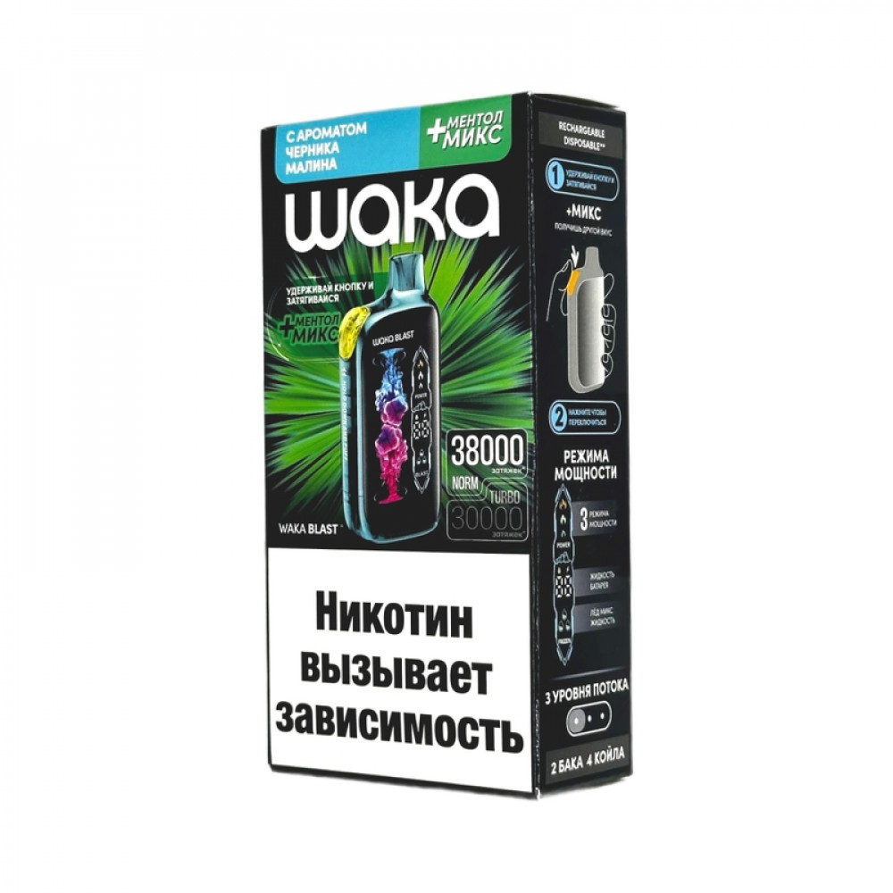 WAKA BLAST 38000 Hard - Черника малина + ментол микс - купить в Ржеве